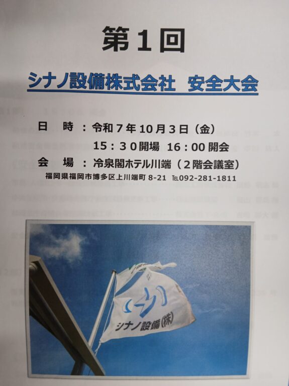 10月3日16時から、シナノ設備㈱の安全大会の第1回目を開催致しました。